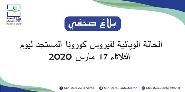 من يومه الثلاثاء 17 مارس 2020 والتاسعة مساء من نفس اليوم، تسجيل ست (6) حالات إصابة
