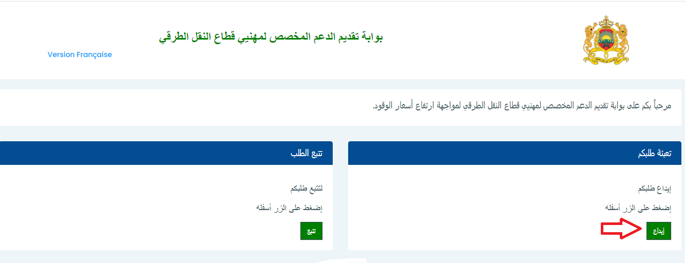 إلى منصة تقديم الدعم المخصص لمهنيي قطاع النقل الطرقي mouakaba.transport.gov.ma