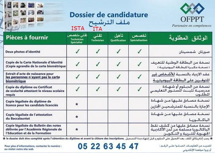 2- ملف التوجيه (التسجيل) (الذي يتم شراؤه بمركز التكوين المهني المرغوب التسجيل به في عين المكان: 50 درهما)؛ (تمت إضافة دفع مصاريف الملف عبر الموقع أيضا)